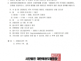 | 공지 | ![]() | 인천시태권도협회 | 5392 | 2025년 12월 31일 | |
