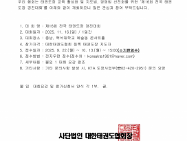 | 공지 | ![]() | 인천시태권도협회 | 4263 | 2026년 1월 16일 | |